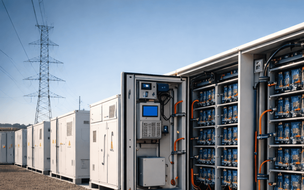 Este tipo de arquitecturas suele apoyarse en soluciones especializadas de almacenaje de energía con baterías (BESS) diseñadas para operación industrial: